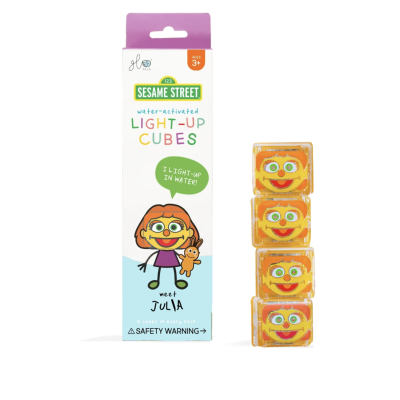 Os 4 cubos de luz da RUa Sésamo da Glopals brilham dentro de água e são tão fáceis de apagar (basta tirar da água).