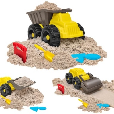 Conjunto com veiculo de Construção + 500 gr de areia cinetica e ainda acessorios.